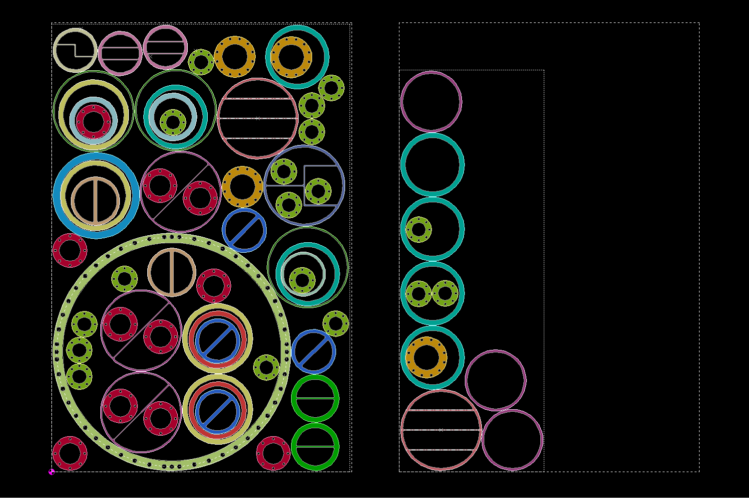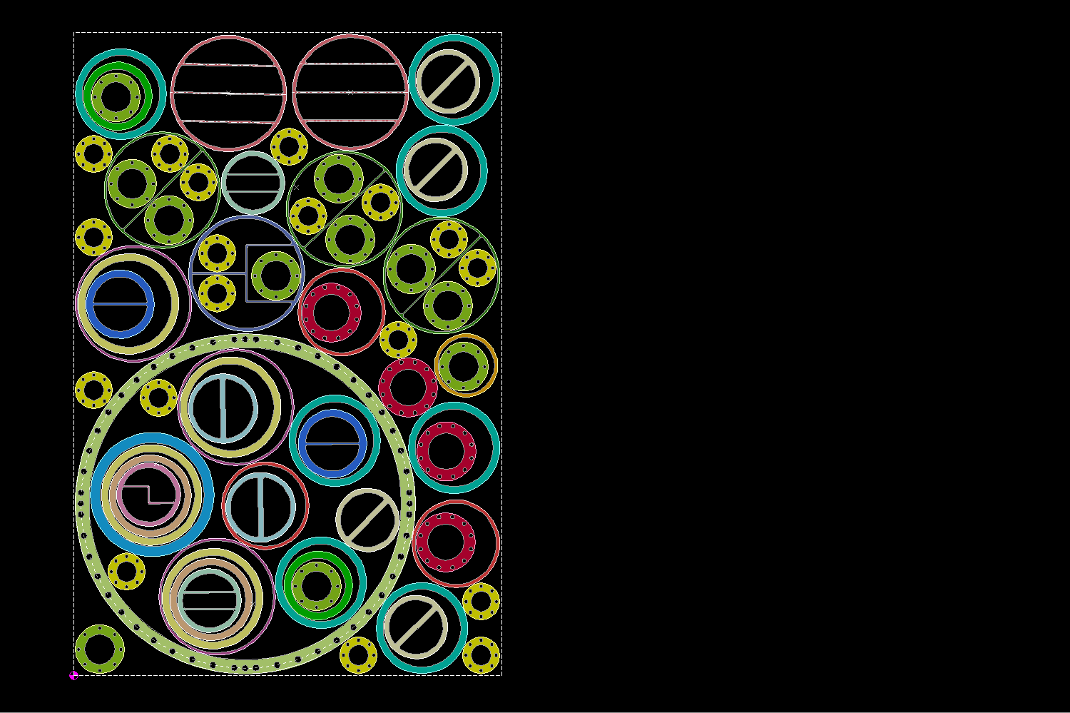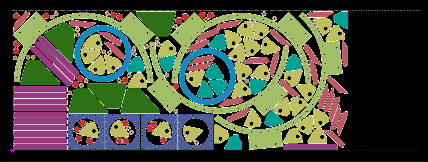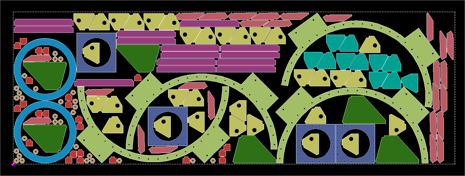 客先別や物件別ごとで部品の配置エリアを分けて自動ネスティングし、エリア毎や部品毎で色分け表示