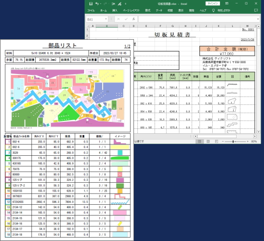 さらに、CAD/CAM機能も使いやすさや機能性を重視して作られているので、DXFファイル読み込み時の図面修正から一括部品登録、ネスティング、NCデータ作成や帳票づくりまで、トータルで時間短縮が図れます。