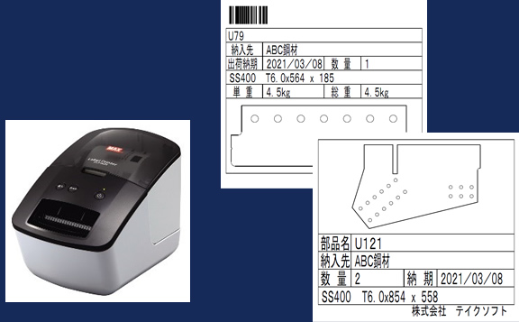 部品リストの作成や表計算ソフトへのデータ転送、現品票のラベルシール印刷が、それぞれボタン一つで簡単に行うことができます。