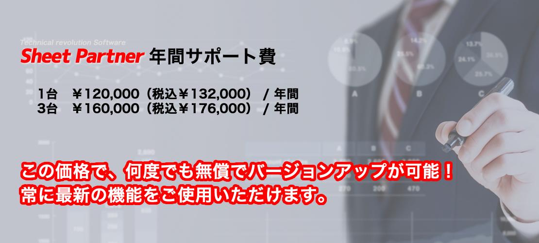 SheetPartnerなら、バージョンアップ費込みの年間サポート費用で低価格設定。